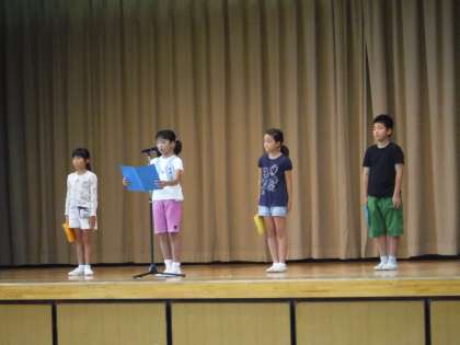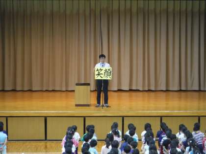 夏休みが終わり、今日から2学期が始まりました。始業式では、校長先生から「笑顔」について話がありました。また、4年生の代表児童が、2学期にがんばりたいことを発表しました。