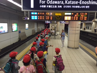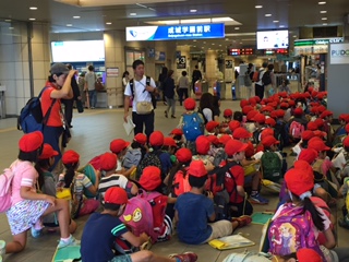 あいにくの天気ですが、多摩動物公園まで遠足に行ってきます。成城学園前の駅に到着しましたが、小田急線が遅れているので、少し待ってから乗車します。行ってきます!