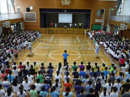 今朝は音楽朝会がありました。リズムをとりながら、みんなで手拍子を合わせて楽しみました。