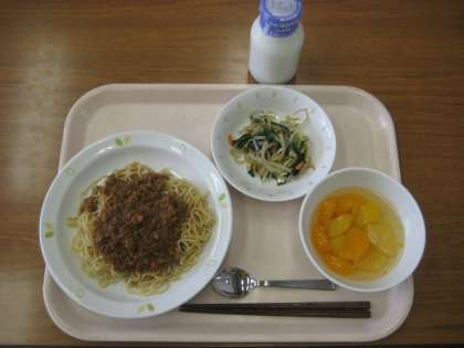 ジャージャーめん 牛乳 塩ナムル フルーツポンチ