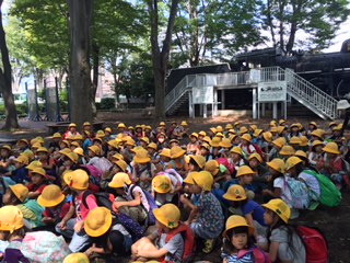 汽車ぽっぽ公園で記念撮影をして、これから砧公園に向かいます!