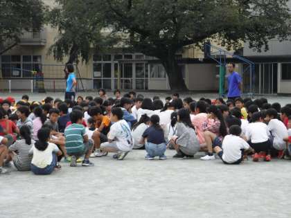 中休みに地震発生を想定した避難訓練を行いました。授業中と違って、自分たちで放送をよく聞き、避難行動をとらなくてはなりません。高学年は整然と動けていて立派でした。
