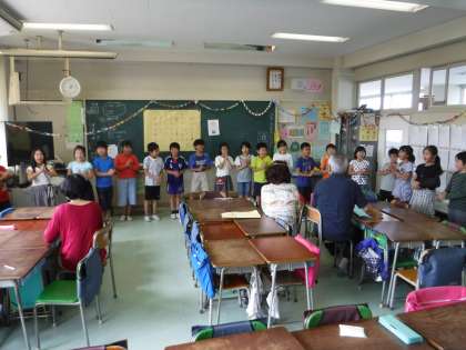 地域の方をお招きして、ふれあい給食を行いました。会食ではいろいろな話で盛り上がり、交流を深めることができたようです。どのクラスも教室の飾りつけや出し物など工夫を凝らしておもてなしをしていました。