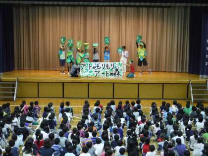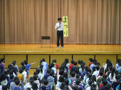 校長先生から来週の土曜日に行われる「明正小まつり」についてお話がありました。また代表委員会の児童が作品展のテーマを発表してくれました。