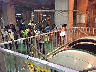 葛西水再生センターに到着し、見学が始まりました。グループで分かれて学習を進めます!