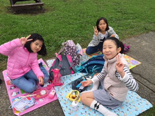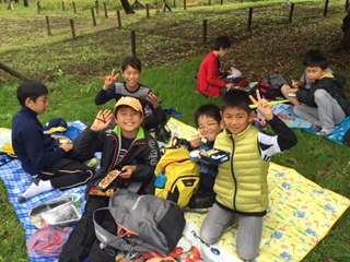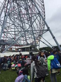 お弁当タイムが終わりました。雨が上がり、葛西臨海公園の観覧車の下で、美味しく食べることができました。午後は中央防波堤へとバスを進めます!