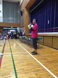 司会は工藤委員長。エイサーの踊りもバッチリ決まりました。高取会長の開会宣言で明正小まつりがスタート!