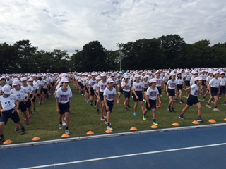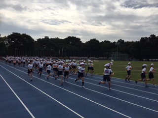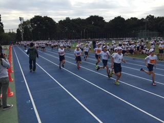 準備運動のあと、ウォームアップとしてトラックを男女別に全員で数周走りました!
