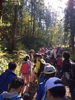 春の遠足で、弘法山ハイキングを経験した子供達でしたが、今日は本格的な登山とあって、みんな休憩の度に嘆き声ばかり。それでも、山頂を目指します!