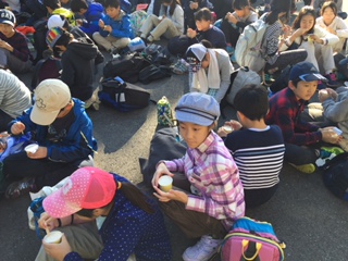 宿舎に到着しました。ご褒美のバニラアイスを食べてから、学年写真を撮りました。これからお風呂タイムです!