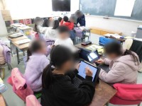 避難訓練の後、煙体験を行いました。煙が充満したハウスの中を通り抜け、視界の悪さや呼吸の苦しさを実際に体験しました。