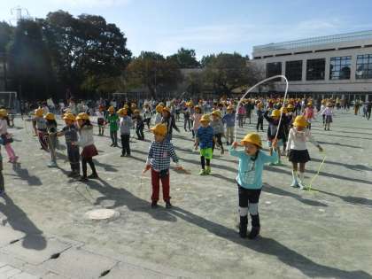 今朝は高学年と低学年に分かれて朝会を行いました。