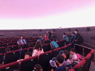 プラネタリウムでは、明正小の校庭から見える空を写してもらい、太陽や月、星の動きを確認しました。今晩、星座早見盤を上手に使って、実際の星空を眺めてみるといいですね!