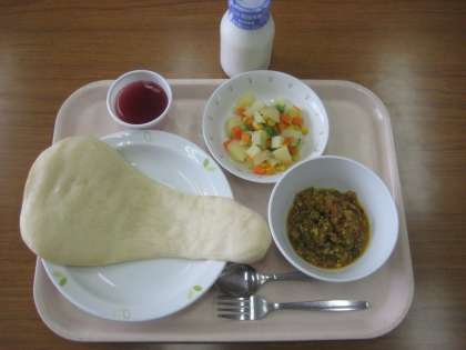 ナン 牛乳 キーマカレー マセドアンサラダ ぶどうゼリー