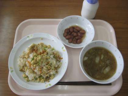 ちらしずし 牛乳 煮豆 とびうおのつみれ汁