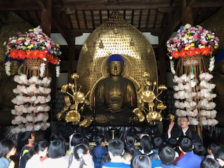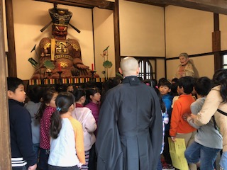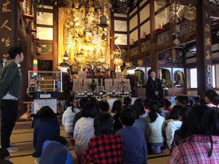 九品仏浄真寺では、お釈迦様や閻魔様を見ながら、たくさんのお話を聞きました。これから等々力渓谷に向かいます!