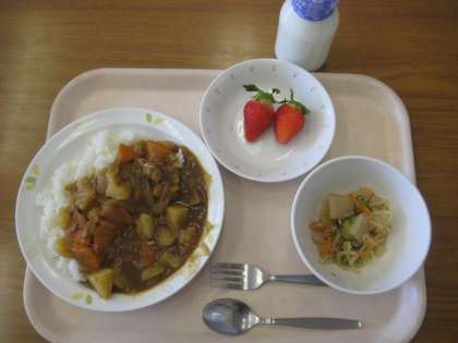 カレーライス 牛乳 こんにゃくサラダ いちご