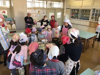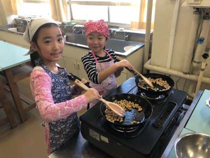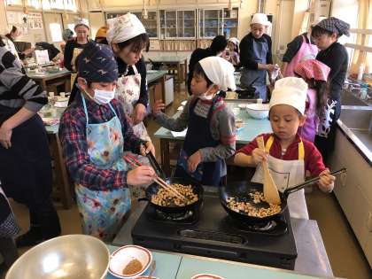 今日の午後は、学校運営委員会主催の親子クッキングがありました。講師は、本校の足達栄養士。家庭科室で、給食の人気メニューを作りました!