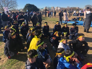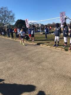 寒風の中、男女各2チームとも快走しています。走り終わったメンバーも大きな声で応援しています!