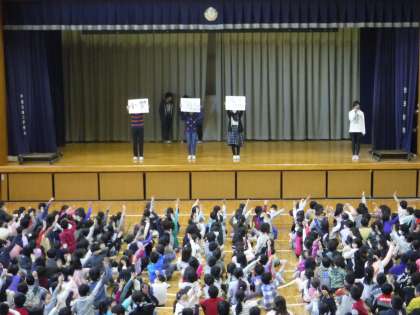 今朝の児童集会は、「ものまねクイズ」を行いました。集会委員会による芸人のものまねに、みんな大喜びでした。