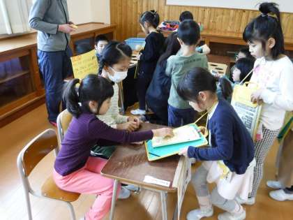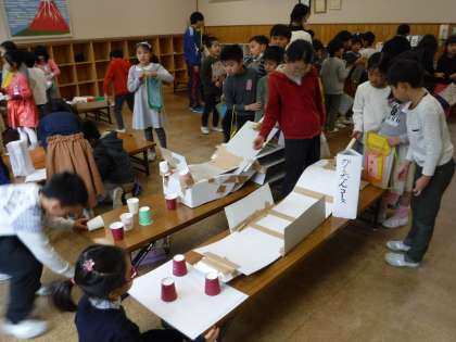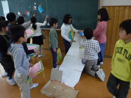 2年生とひまわり学級が、生活科で作ったおもちゃで「明正ハッピーランド」を開店し、1年生を招待して交流を楽しみました。