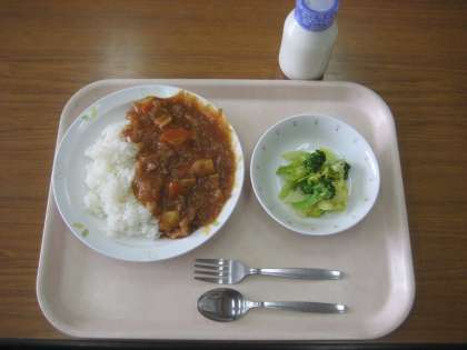 ハッシュドポークライス 牛乳 ブロッコリーのサラダ