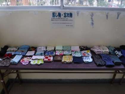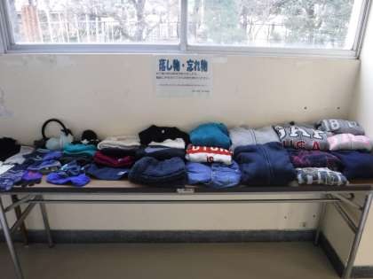 パーカー、手袋、マフラー、ハンカチ…沢山の落とし物が届いています。中央昇降口に並べて置いてありますので、ご来校の際に確認していただくようお願いします。持ち主が見つからなかったものについては、3月末に学校で処分いたします。ご了承ください。