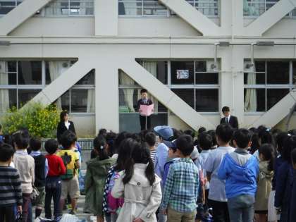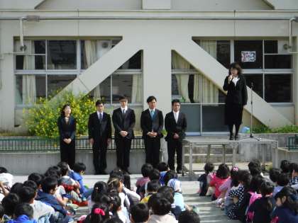 着任式・始業式では、新しく明正小に着任した教職員の紹介や担任発表がありました。また、6年生の代表児童が新年度の思いを発表しました。