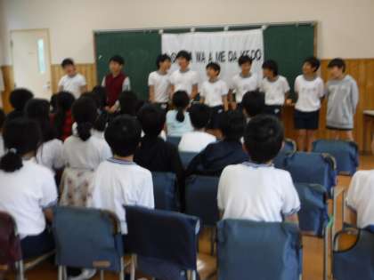 劇団四季の方に、相手にはっきり・しっかりと伝わる日本語の話し方を教えていただきました。最後は「友達はいいもんだ」を一緒に歌い、気持ちよく終わりました。