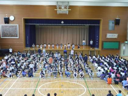 今朝の児童集会では、委員会の紹介を行いました。各委員会の委員長が、それぞれの活動内容をわかりやすく発表しました。
