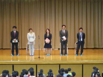 離任式を行い、お世話になった先生方に感謝の気持ちを伝えました。去られた先生方からも温かい励ましのお言葉をいただきました。
