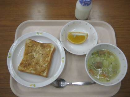 ツナトースト 牛乳 ポトフ 甘夏みかん