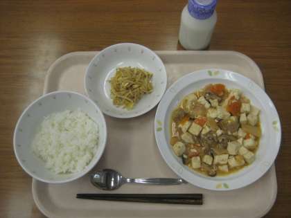 ごはん 牛乳 四川豆腐 豆もやしのごま風味