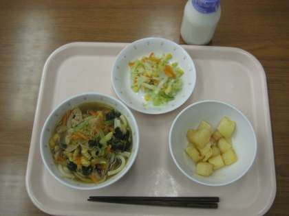 カレーうどん 牛乳 じゃがいものからあげ コーンサラダ