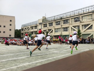 エールの交換に続き、5年生の100メートル走です。さすが高学年。迫力のある走りが続きます。