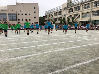 軽快な音楽に乗って踊る3年生。「やってみよう」は3年生の学年目標でもあります。いろいろなことに前向きに取り組む3年生。ダンスのサビの部分は自分たちで考えました。