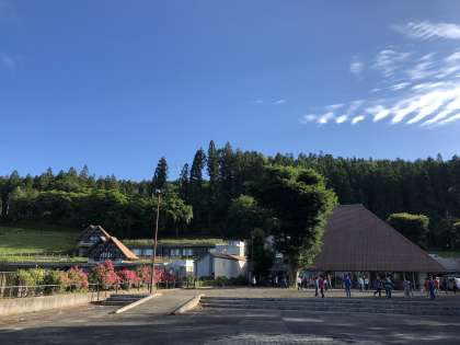 朝会に向けて、子どもたちが続々と「村のにわ」に集まって来ています。