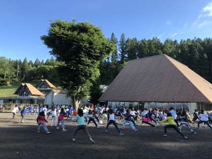 朝会では、ラジオ体操の代わりにソーラン節を踊りました。体も心もシャキッと目覚めていくのがわかります。