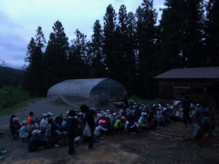 森の学校から小高い丘に上って、榛名山系や川場の中心地の夜景を眺めました。