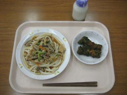 五目冷しうどん 牛乳 ちくわの磯部あげ