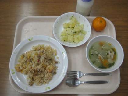 ナシゴレン 牛乳 パセリポテト 冬瓜のスープ