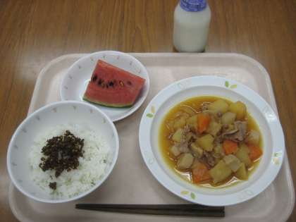 ごはん ふりかけ 肉じゃがうま煮 すいか 牛乳