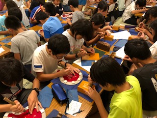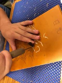 コツをつかんで彫り進めています。素晴らしい集中力です。時間を延長していただけることになりました。
