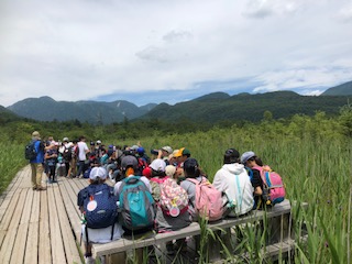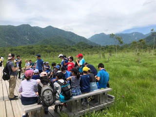 戦場ヶ原の素晴らしい景色を背景にクラス写真を撮って休憩です。山々がこんなに美しく見えるのは珍しいそうです。