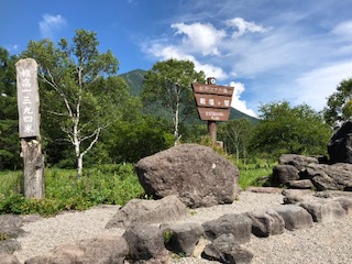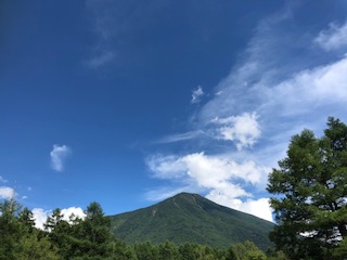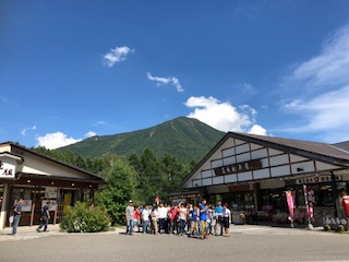 青空に輝く雄大な男体山。この絶景をバックにみんなで写真を撮影しました。男体山が頂上まで姿を見せるのは大変珍しくて幸運なことだそうです。