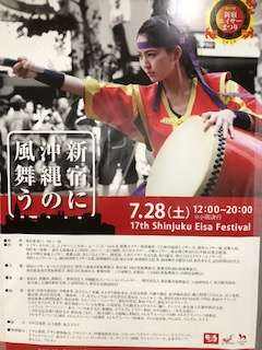 月曜日からエイサーの練習が始まっています。新宿エイサーのポスターは体育館入口に掲示してあります。ぜひ皆様応援よろしくお願いします。