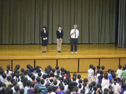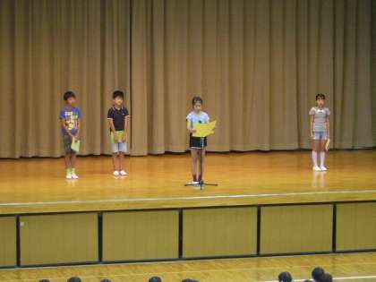 始業式では校長先生から「見通しをもって行動しよう」という話がありました。また4年生の代表児童が2学期に頑張りたいことを発表してくれました。