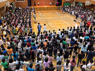 今日の音楽朝会は「クラッピング・ファンタジー」です。低学年と高学年で異なる手拍子のリズムが波のように重なって体育館に響き、大変心地よい空間が広がりました。音楽委員会の5・6年生が、1-3年の各学級とひまわり学級にレクチャーに行った成果が、今日の見事な演奏につながりました!