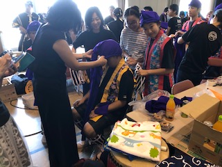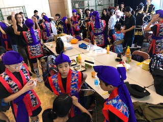 浅草郵便局の控室で、ハッピー☆エイサーズの準備が着々と進んでいます。みなさん、応援よろしくお願いします!