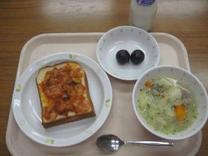 ピザトースト 牛乳 ポトフ 巨峰